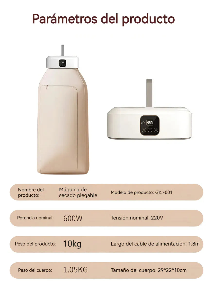 Sabemos que a veces necesitamos tener la ropa seca en pocas horas o queremos secarla en momentos donde no hay acceso a luz del sol, para momentos como esos este secador de ropa portátil con capacidad de hasta 10 kg en prendas es excepcional ideal para secar ropa de manera rápida, eficiente y segura. Seca desde ropa diaria hasta edredones y zapatos en unas pocas horas
